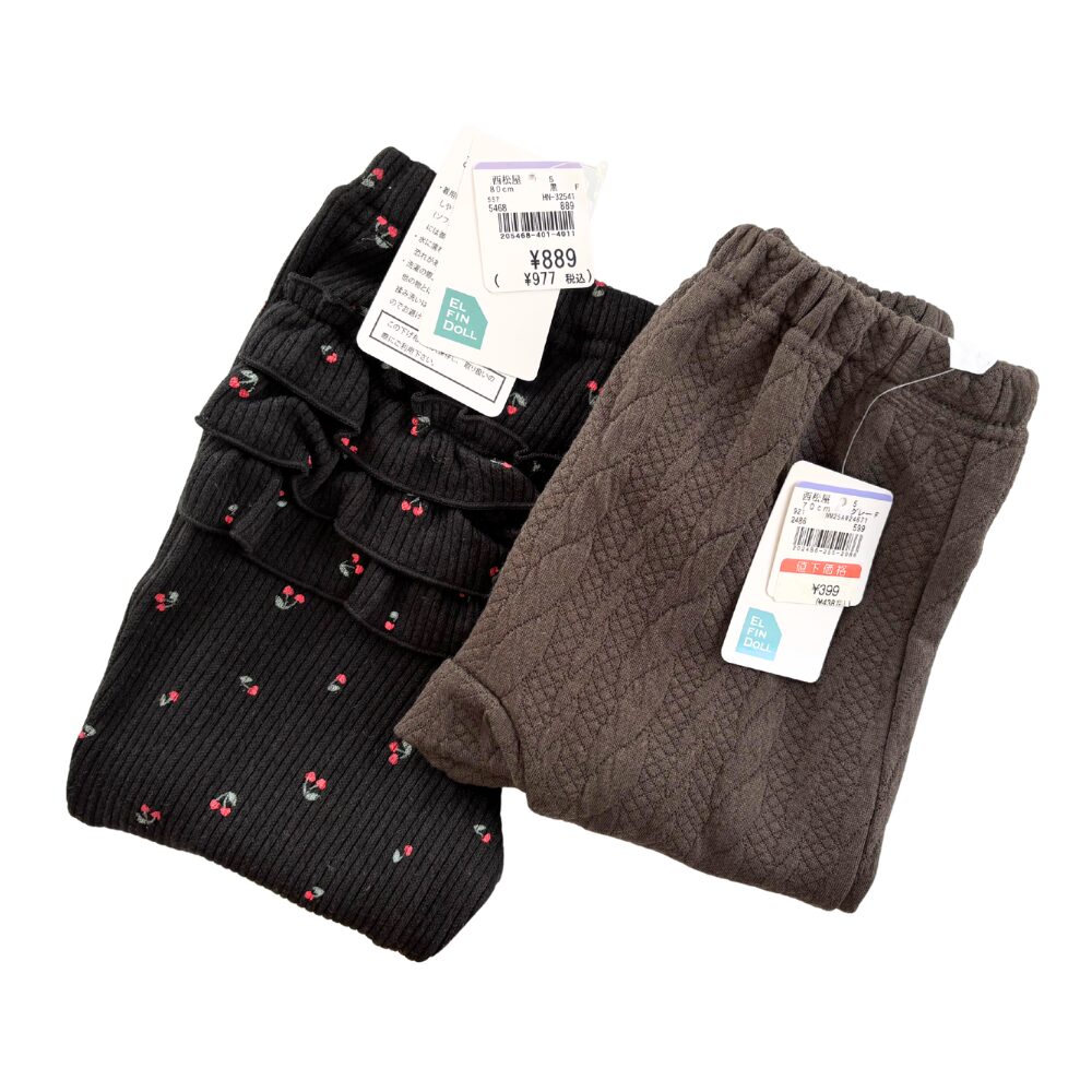 西松屋の底値は夏物衣類が税抜99円(2025年は79円)、冬物衣類が税抜199円となる傾向があります。